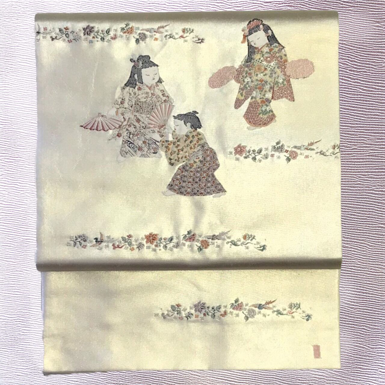 当店では、出来るだけ綺麗な状態にする為に、帯の加工屋さんで、プレス加工を施しています。)