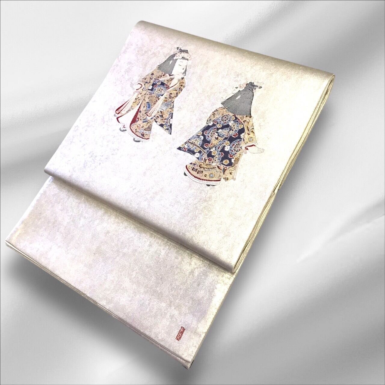 加賀友禅の巨匠、初代由水十久(ゆうすい とく)監修による逸品、老舗ながしま織物の本銀箔使用の瀞銀錦の高級袋帯です。