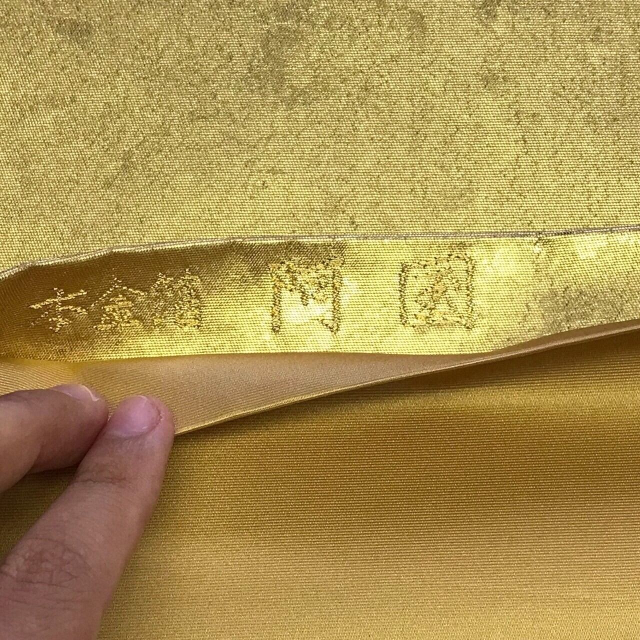 加賀友禅の巨匠、初代由水十久(ゆうすい とく)監修による逸品、老舗ながしま織物の本金箔使用の瀞金錦の高級袋帯です。