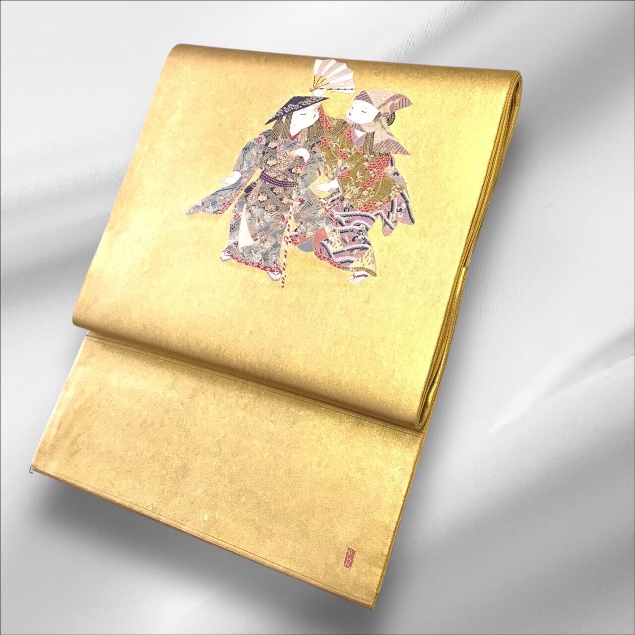 当店では、出来るだけ綺麗な状態にする為に、帯の加工屋さんで、プレス加工を施しています。)
