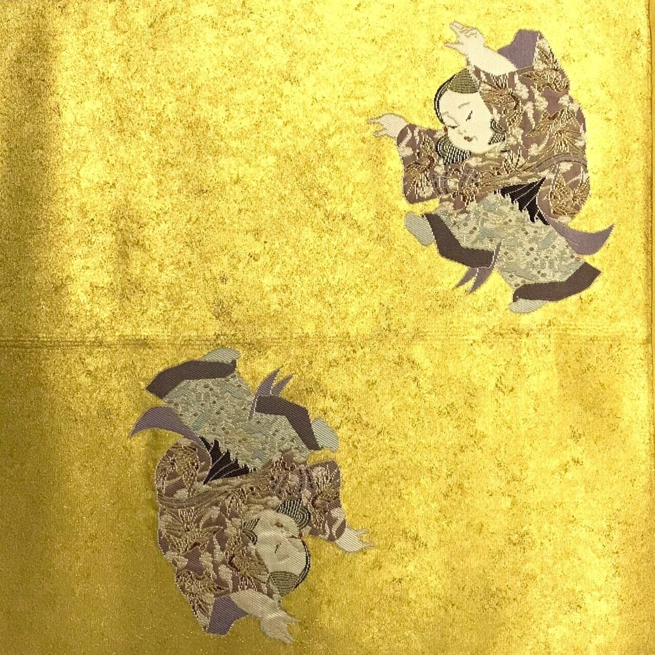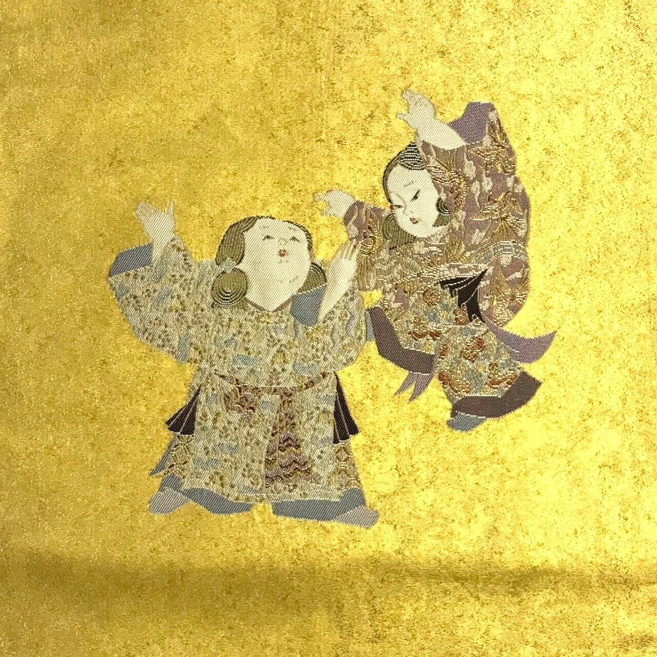 加賀友禅の巨匠、初代由水十久(ゆうすい とく)監修による逸品、老舗ながしま織物の本金箔使用の瀞金錦の高級袋帯です。