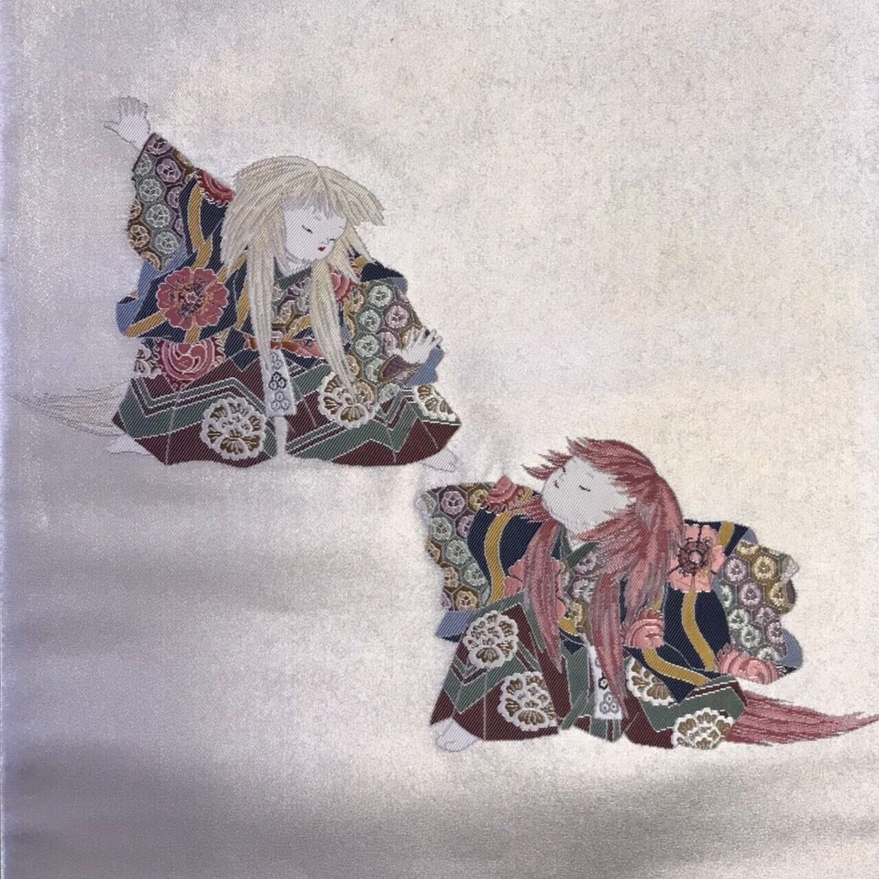 【逸品】加賀友禅 初代由水十久監修 ながしま織物 瀞銀錦 袋帯 うなゐ帯 題目「連獅子」