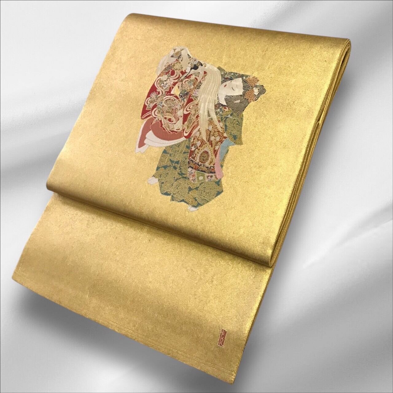 【逸品】加賀友禅 初代由水十久監修 ながしま織物 瀞金錦 袋帯 うなゐ帯 童子