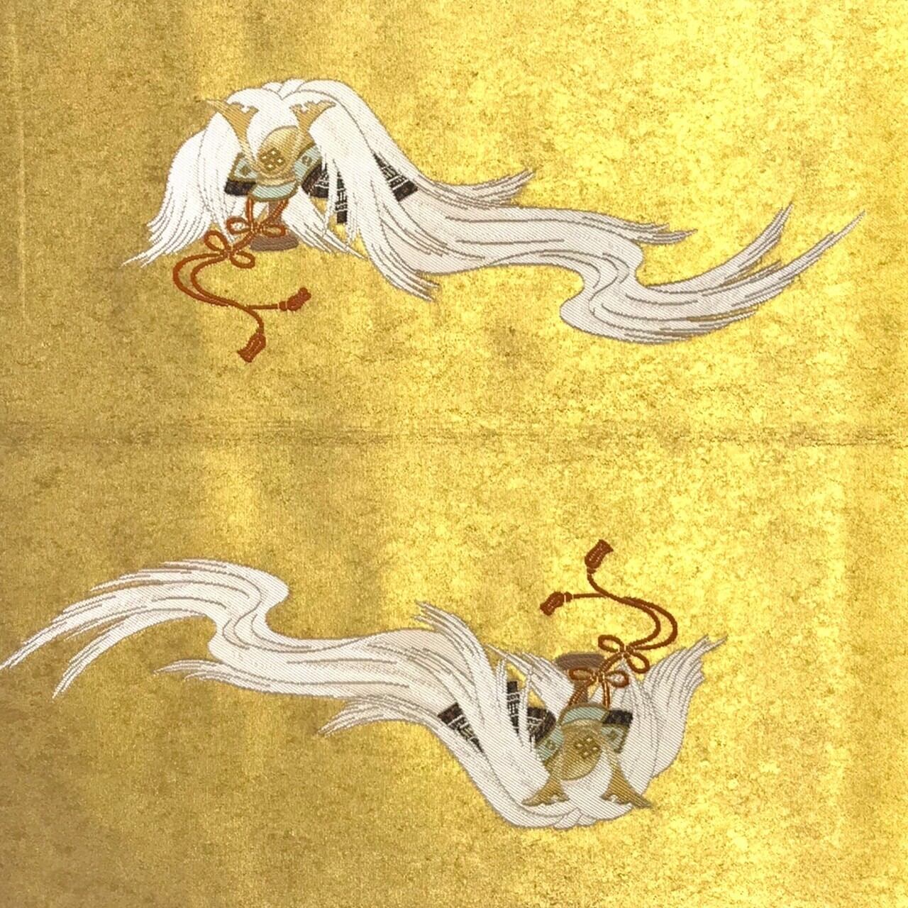 加賀友禅の巨匠、初代由水十久(ゆうすい とく)監修による逸品、老舗ながしま織物の本金箔使用の瀞金錦の高級袋帯です。