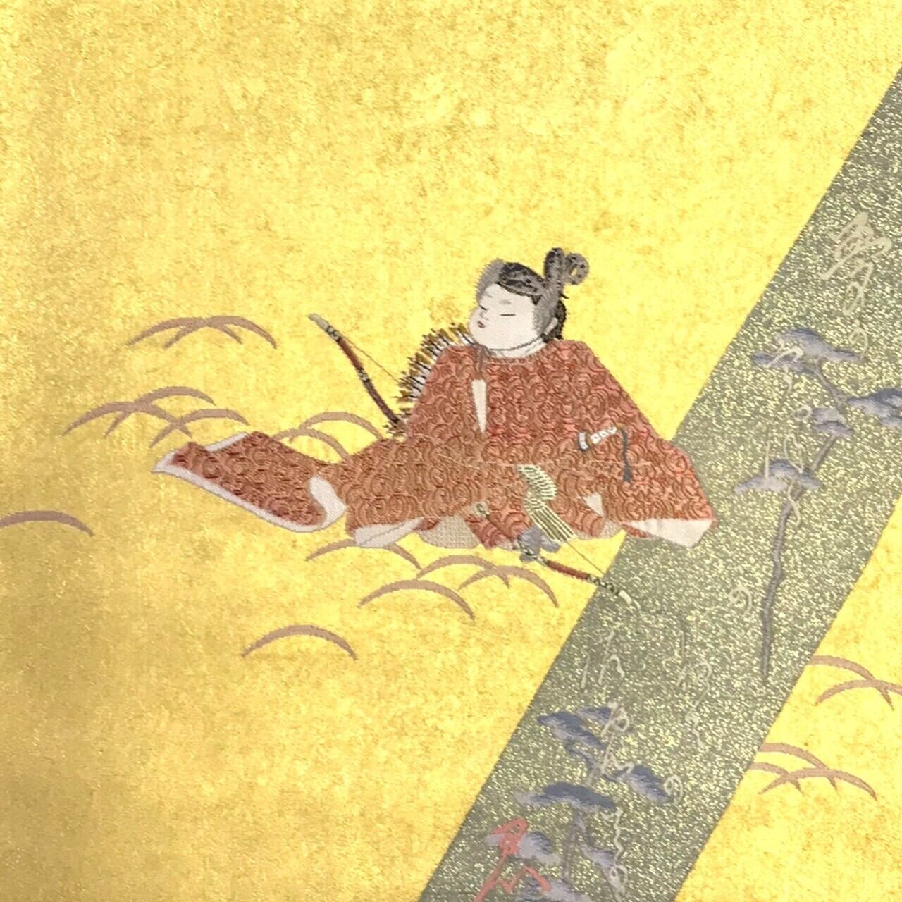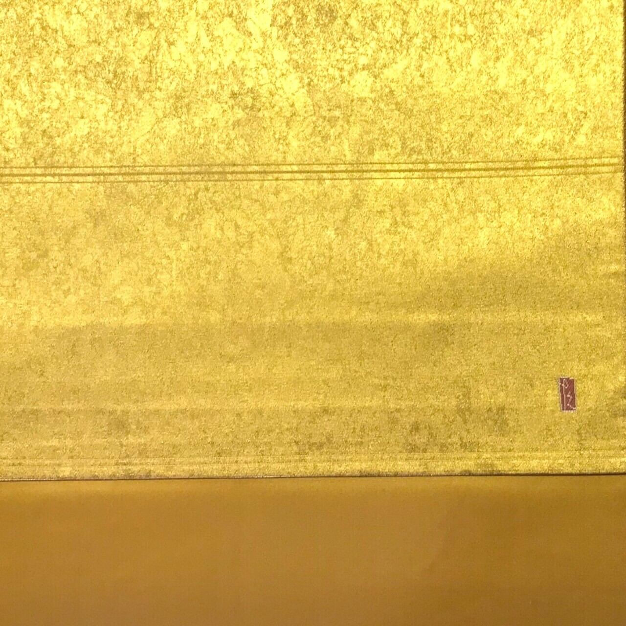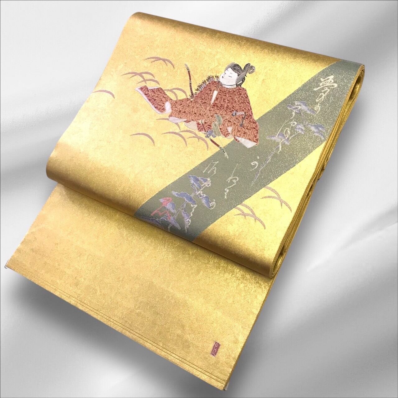 加賀友禅の巨匠、初代由水十久(ゆうすい とく)監修による逸品、老舗ながしま織物の本金箔使用の瀞金錦の高級袋帯です。