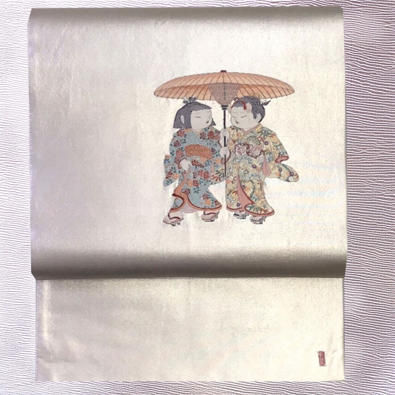 加賀友禅の巨匠、初代由水十久(ゆうすい とく)監修による逸品、老舗ながしま織物の本銀箔使用の瀞銀錦の高級袋帯です。