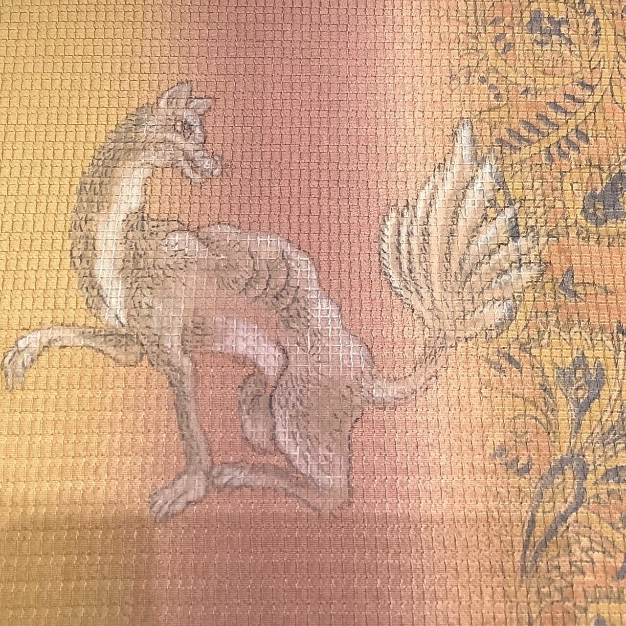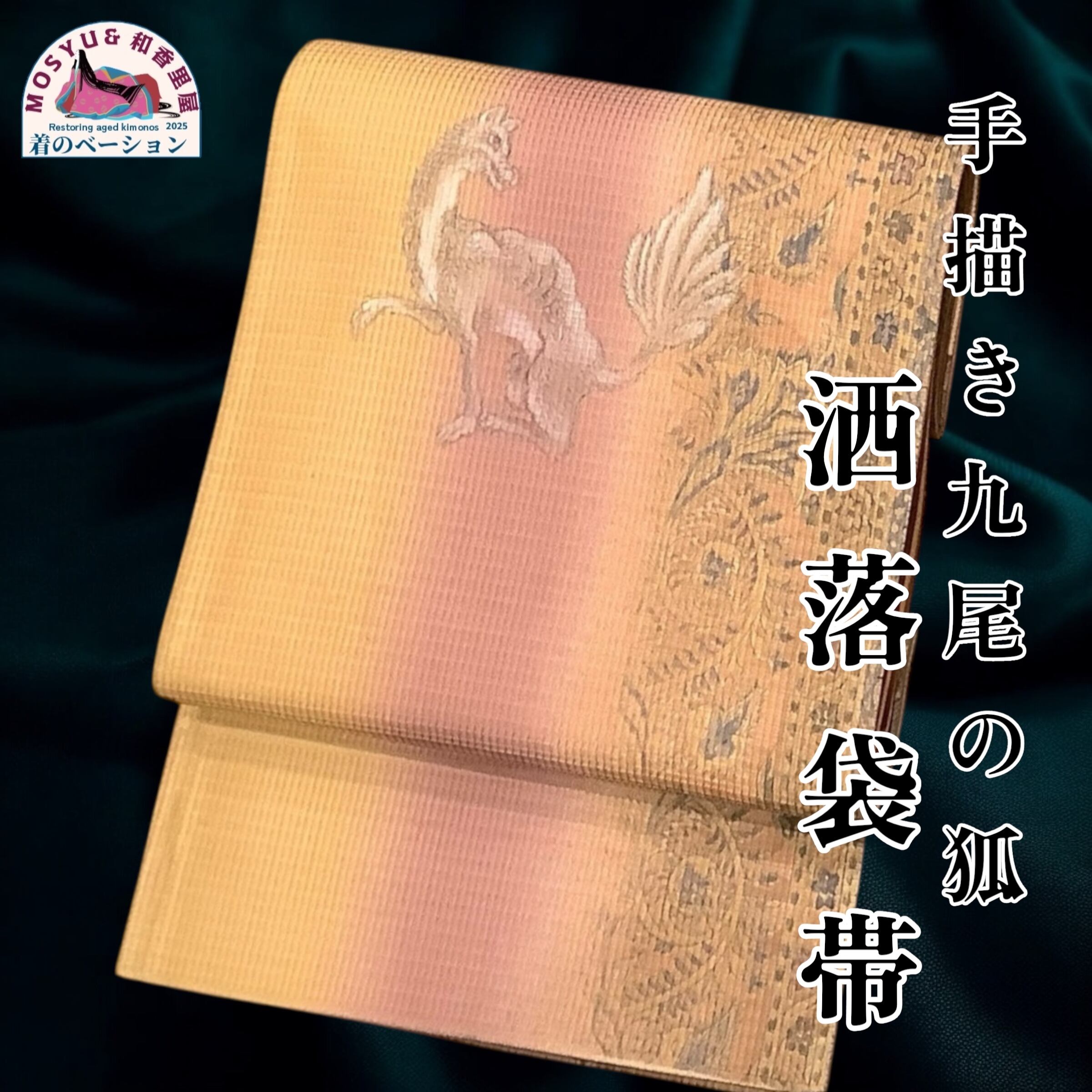 リユースの袋帯に絵を足す事で、新たな手描き帯としました。