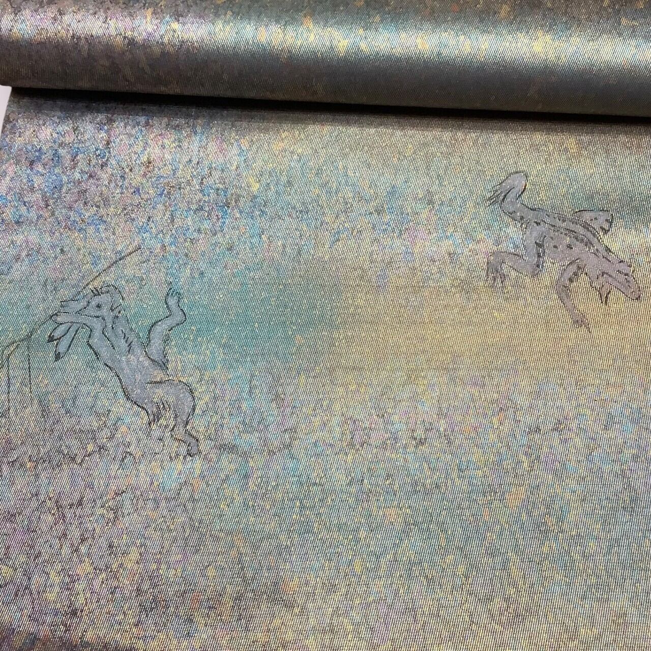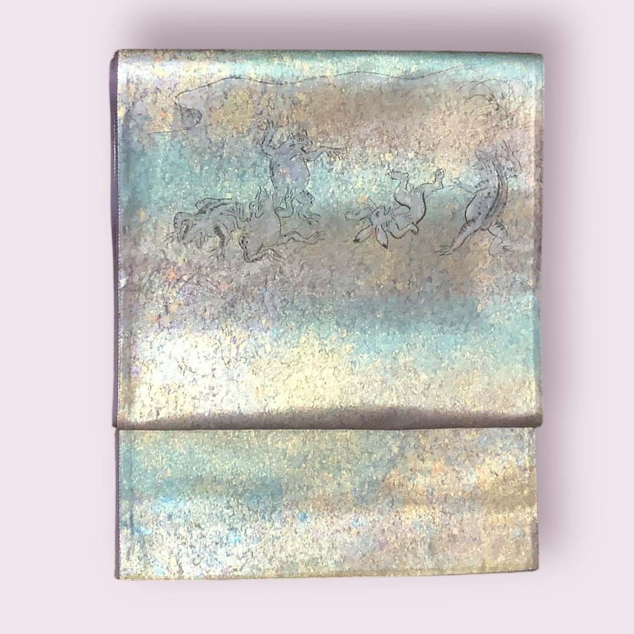 リユースの袋帯に絵を足す事で、新たな手描き帯としました。