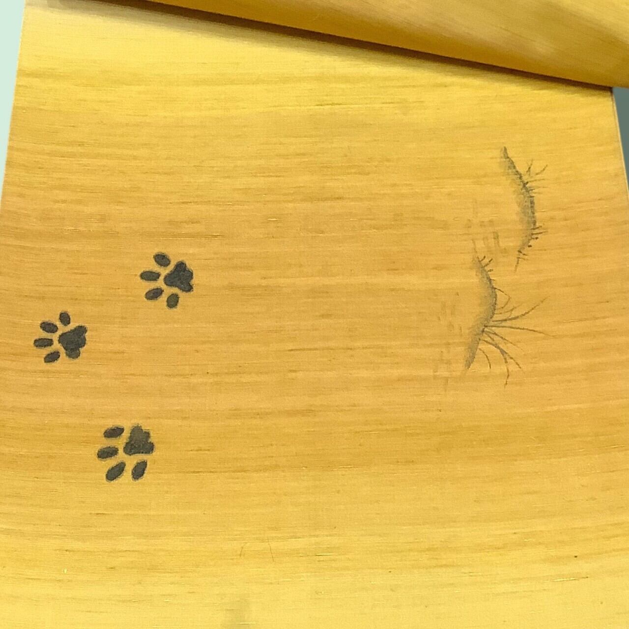 リユースの袋帯に絵を足す事で、新たな手描き帯としました。