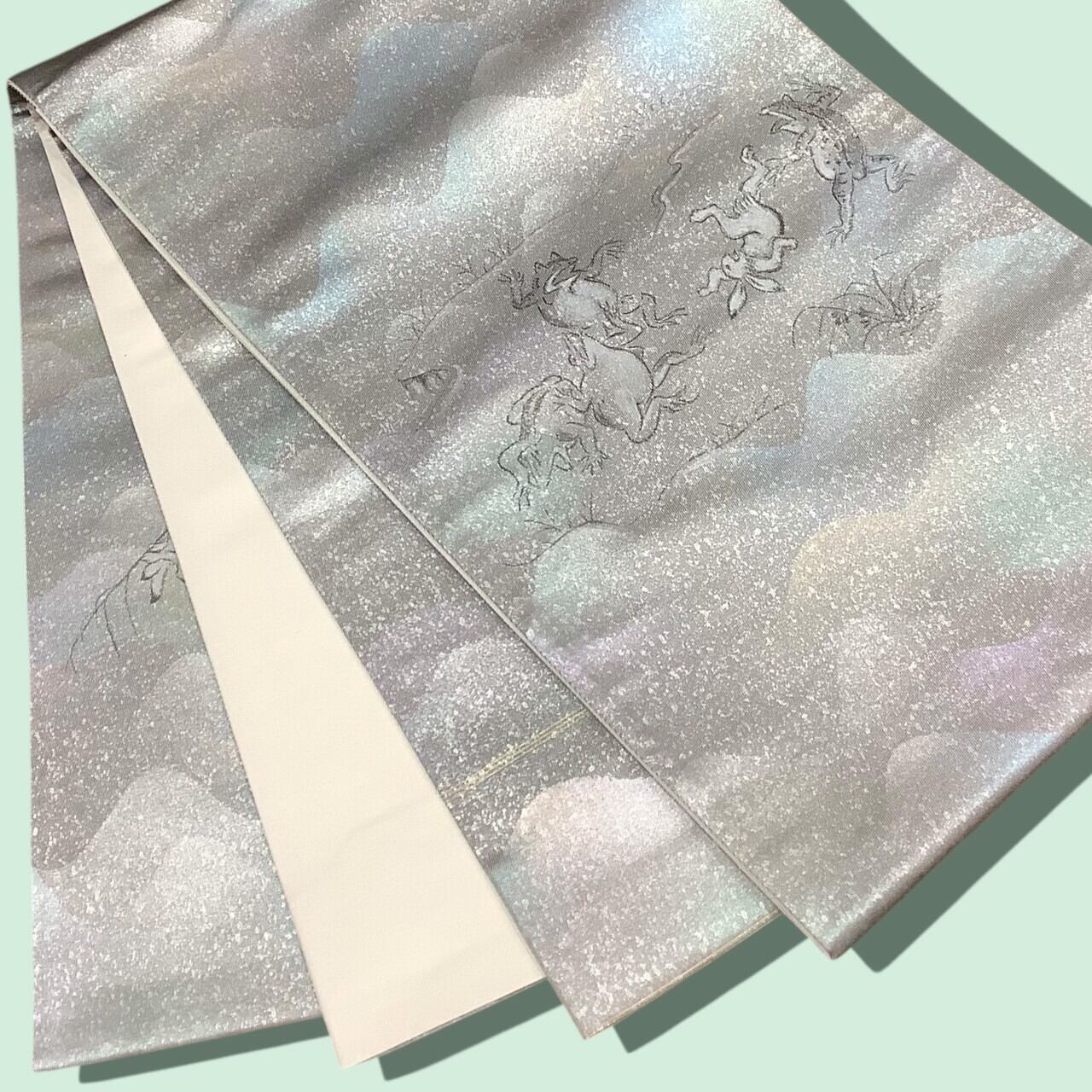 【MOSYUto和香里屋】オリジナル 手描き 袋帯 洒落袋帯 鳥獣戯画図
