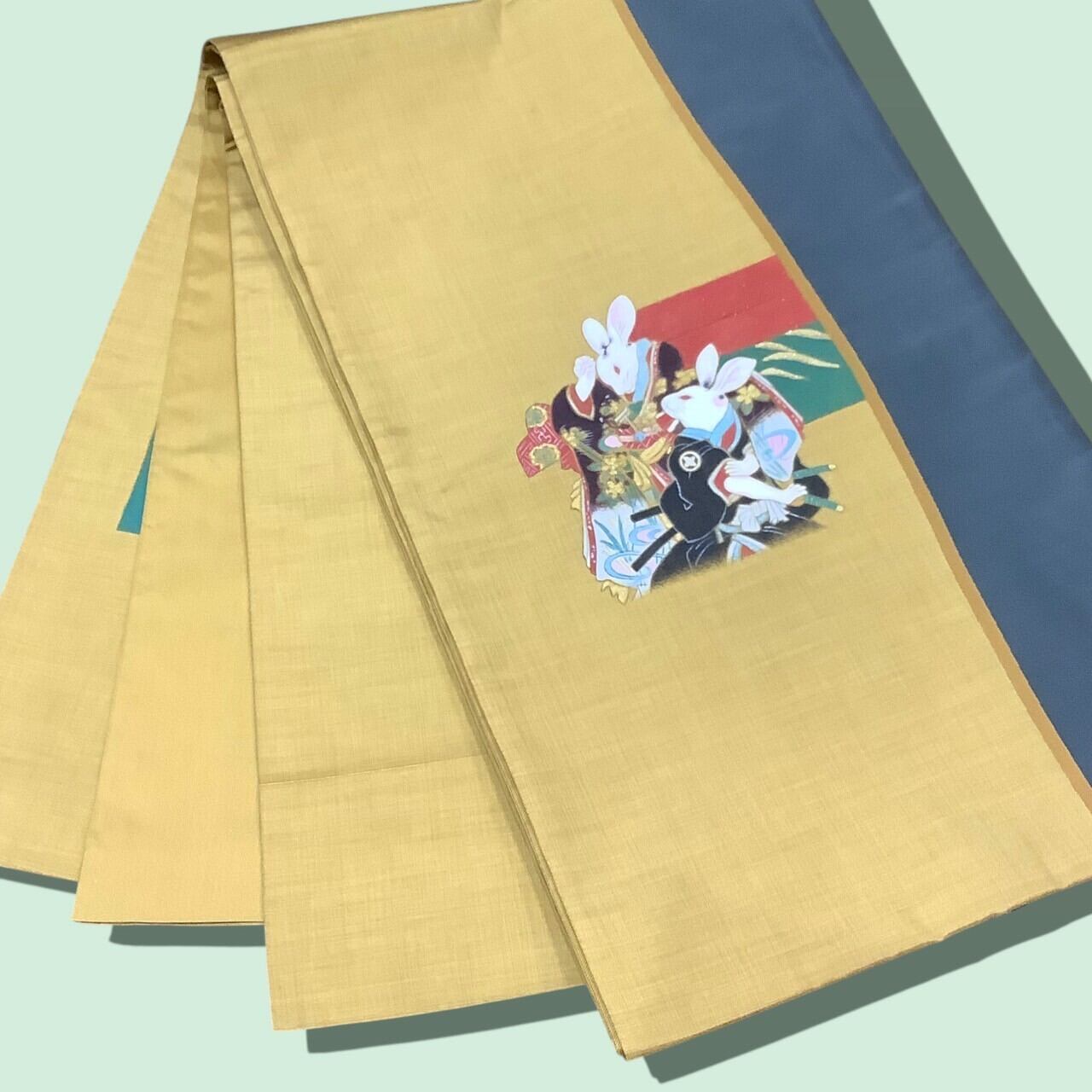 リユースの袋帯に絵を足す事で、新たな手描き帯としました。